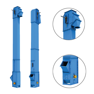– Phễu cấp liệu và xả liệu được làm bằng thép tấm, phễu cấp liệu được gắn với cụm vỏ dưới, phễu xả liệu được gắn với cụm vỏ trên. Phễu cấp liệu và xả liệu được thiết kế sao cho vật liệu có thể đi vào và đi ra khỏi gầu một cách dễ dàng mà không bị nghẹt.
